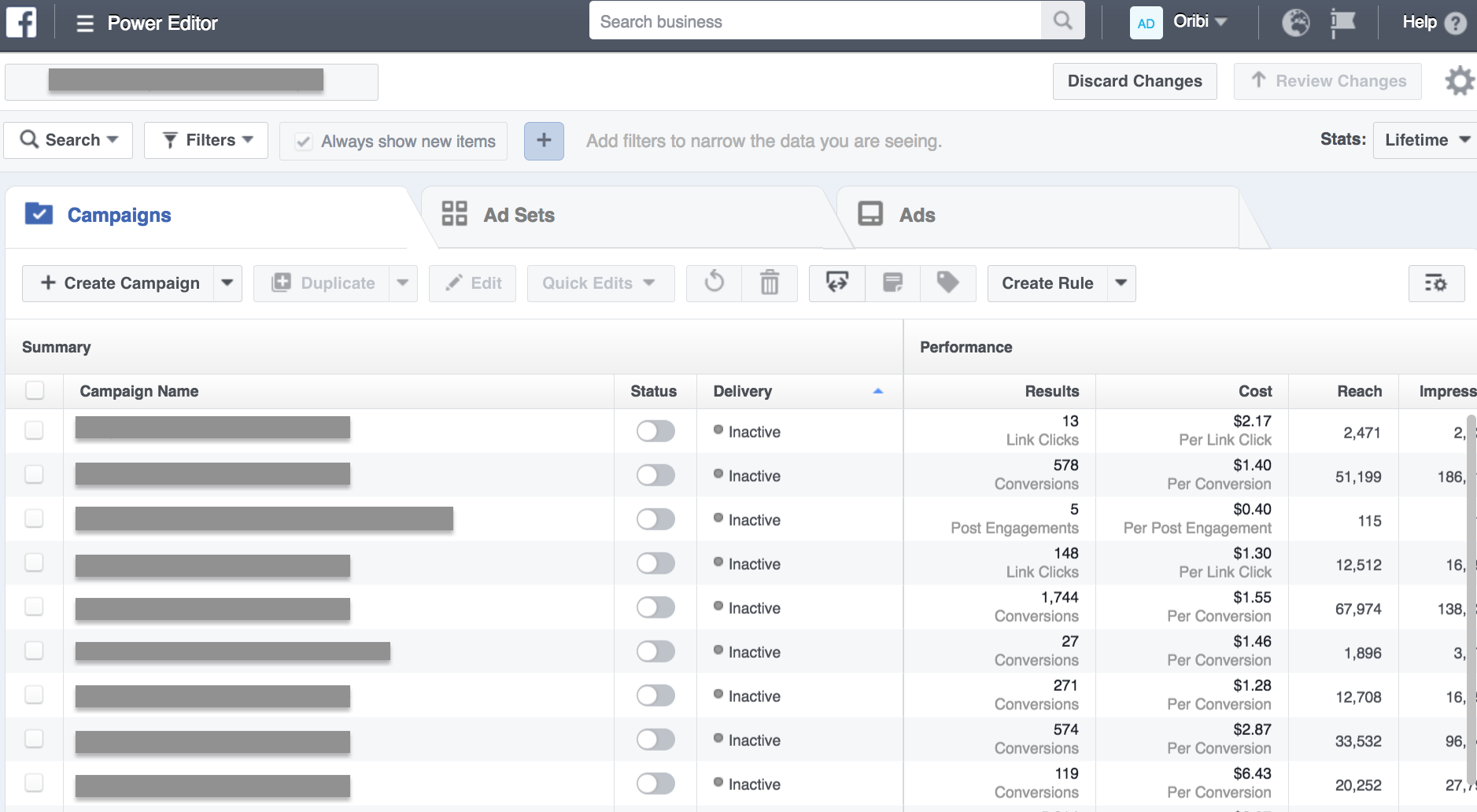Facebook Ad manager example